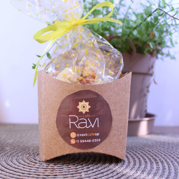 Delicie-se com a suavidade e o sabor único da Areia de Cascais, uma bolacha amanteigada da Ravi Café. Com uma textura leve e crocante, esta bolacha é feita com ingredientes selecionados e combina o sabor autêntico da manteiga com um toque de requinte. Perfeita para acompanhar o seu café, chá ou para um momento de indulgência ao longo do dia.